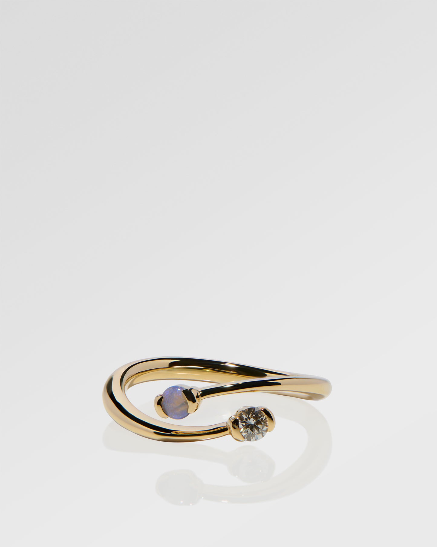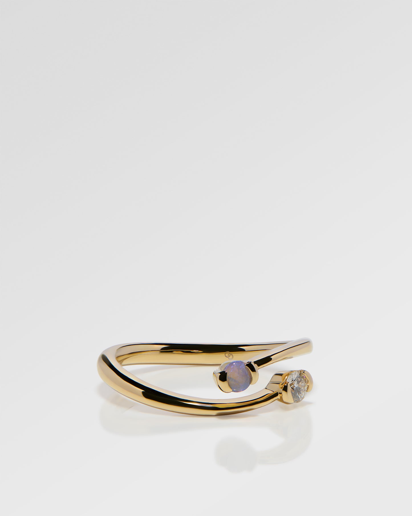 クロスオーバー リング、オパール &ダイヤモンド